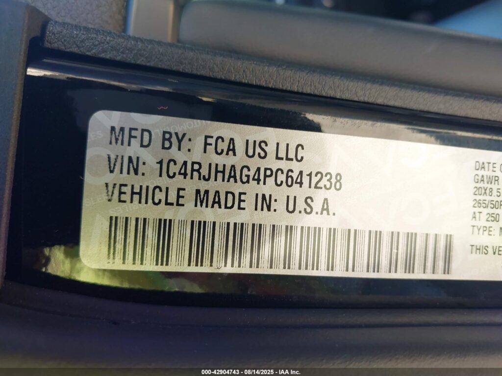 | VIN Number | 1C4RJHAG4PC641238 |