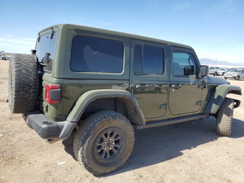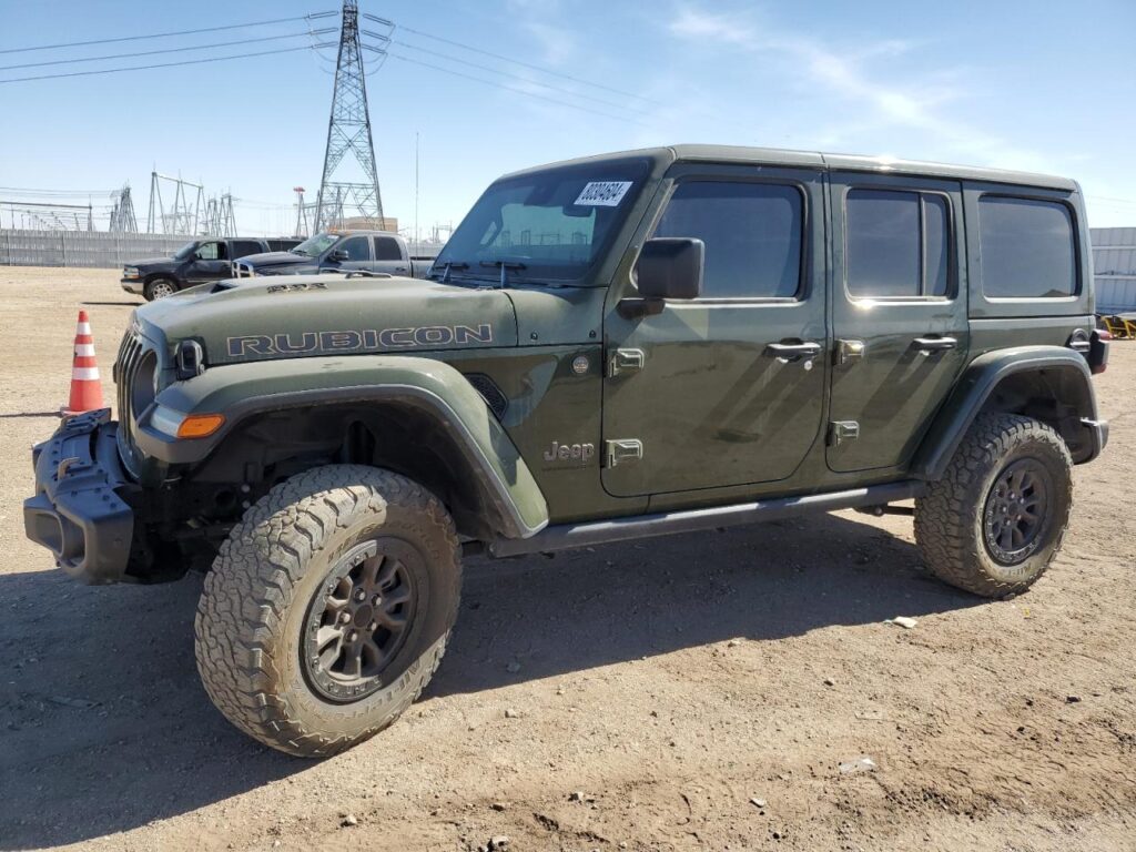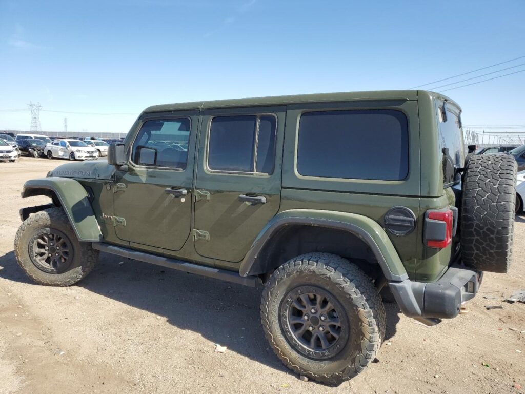 This 2023 Jeep Wrangler (Green) is equipped with an engine designed to balance performance and efficiency. According to the auction listing, the vehicle had 33,810 miles at the time of sale.