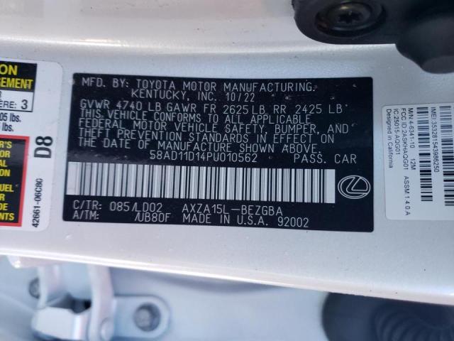This 2023 Lexus ES 250 (White) comes from a major insurance auction in the USA or Canada. All information on this page is linked to the vehicle’s VIN (58AD11D14PU010562), which helps confirm where the car was listed and what condition it was in at the time of sale.