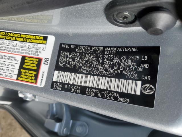 This 2023 LEXUS ES300 (SILVER) comes from a major insurance auction in the USA or Canada. All information on this page is linked to the vehicle’s VIN (58AEA1C12PU032551), which helps confirm where the car was listed and what condition it was in at the time of sale.