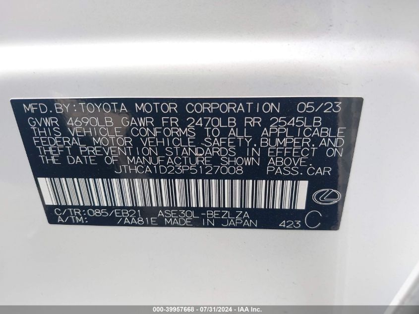VIN: JTHCA1D23P5127008