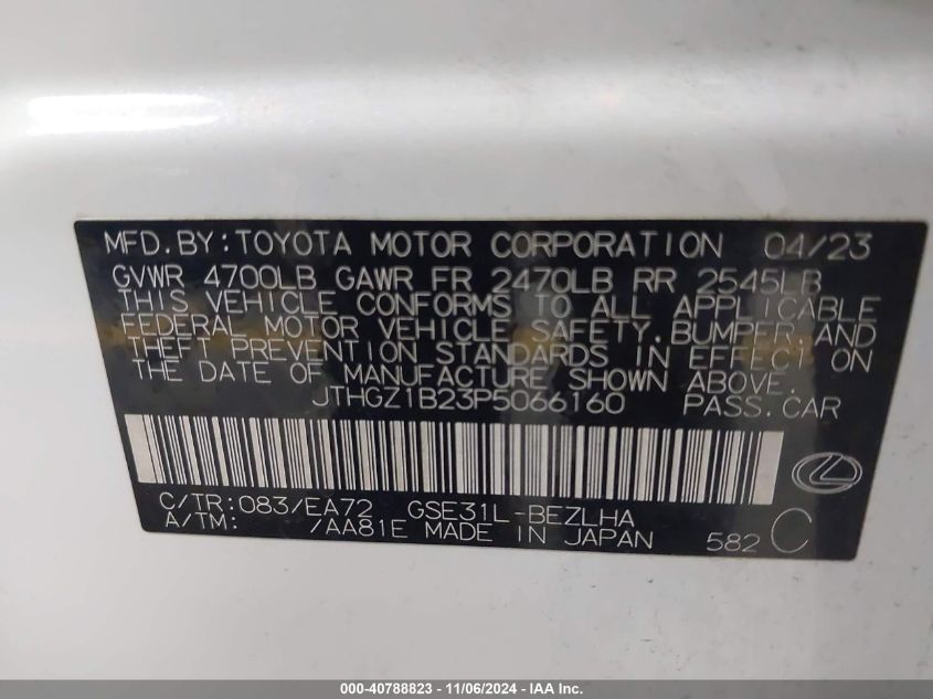 This 2023 LEXUS IS 350 (White) comes from a major insurance auction in the USA or Canada. All information on this page is linked to the vehicle’s VIN (JTHGZ1B23P5066160), which helps confirm where the car was listed and what condition it was in at the time of sale.