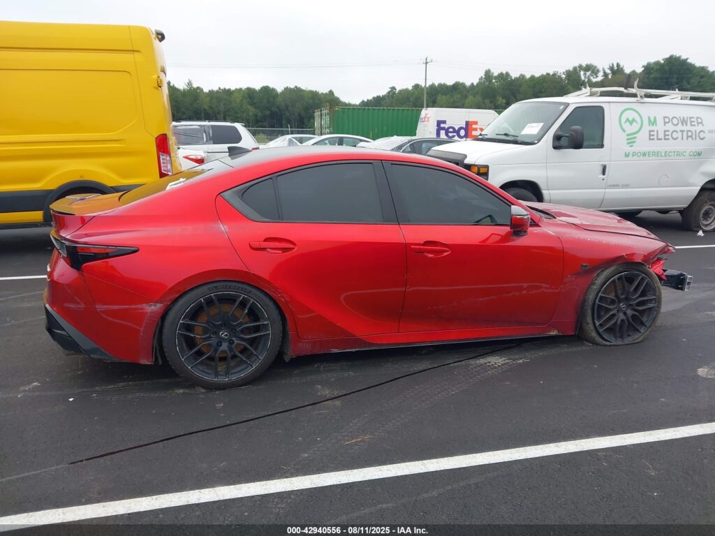 This 2023 Lexus IS 500 (Red) comes from a major insurance auction in the USA or Canada. All information on this page is linked to the vehicle’s VIN (JTHAP1D25P5004199), which helps confirm where the car was listed and what condition it was in at the time of sale.