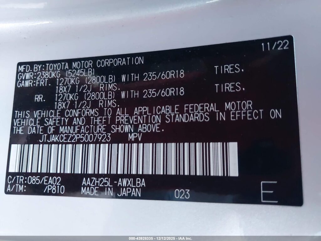 This 2023 Lexus NX 350h (White) comes from a major insurance auction in the USA or Canada. All information on this page is linked to the vehicle’s VIN (JTJAKCEZ2P5007923), which helps confirm where the car was listed and what condition it was in at the time of sale.