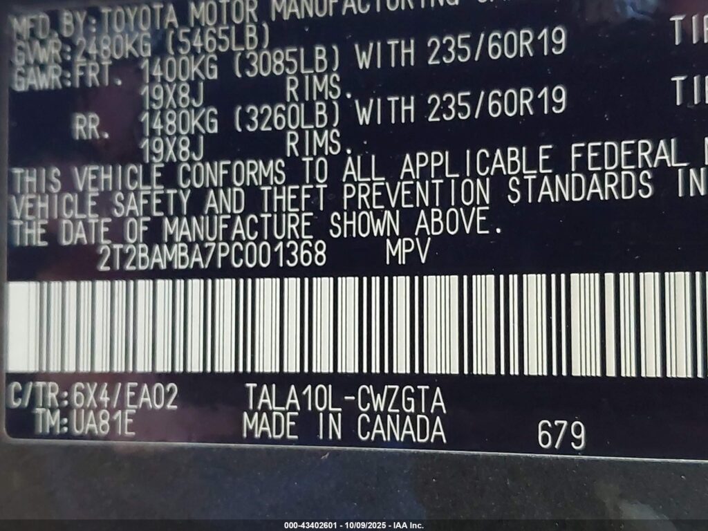 | VIN Number | 2T2BAMBA7PC001368 |