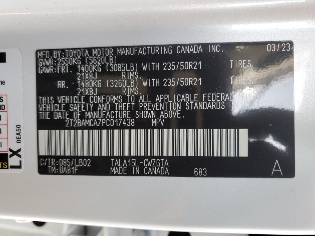 This 2023 Lexus RX 350 (White) comes from a major insurance auction in the USA or Canada. All information on this page is linked to the vehicle’s VIN (2T2BAMCA7PC017438), which helps confirm where the car was listed and what condition it was in at the time of sale.