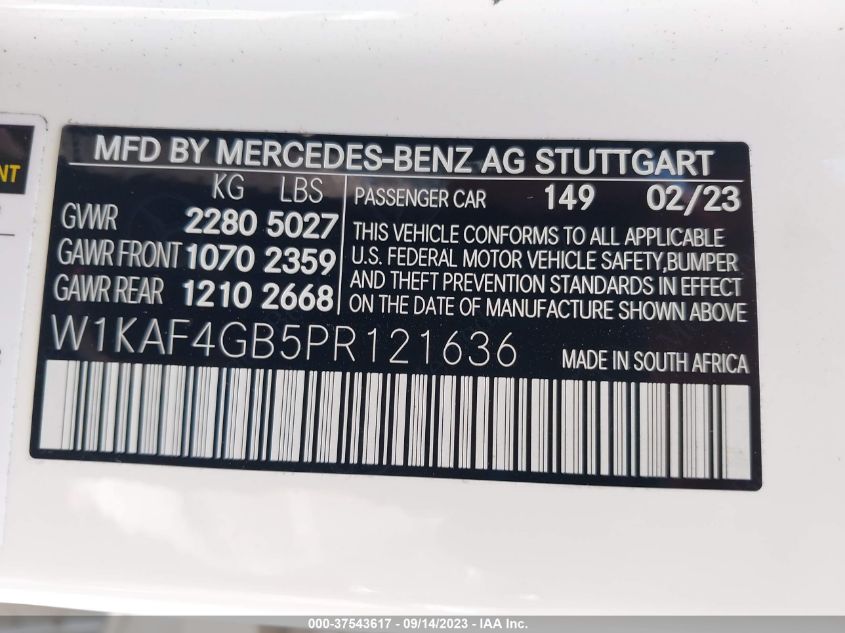| VIN Number | W1KAF4GB5PR121636 |