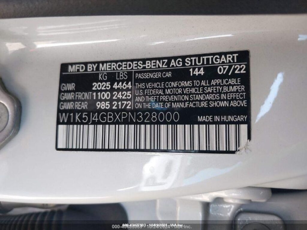 | VIN Number | W1K5J4GBXPN328000 |