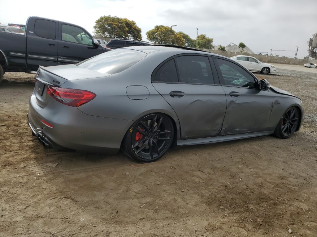 This 2023 Mercedes-Benz E-Class (Grey) is equipped with an engine designed to balance performance and efficiency. According to the auction listing, the vehicle had 9,666 miles at the time of sale.