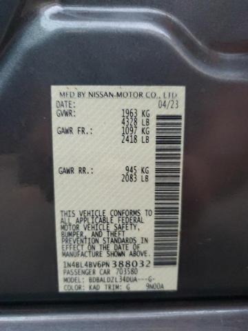 This 2023 NISSAN ALTIMA (GRAY) comes from a major insurance auction in the USA or Canada. All information on this page is linked to the vehicle’s VIN (1N4BL4BV6PN388032), which helps confirm where the car was listed and what condition it was in at the time of sale.