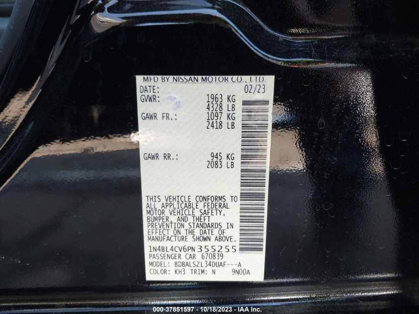 | VIN Number | 1N4BL4CV6PN355255 |