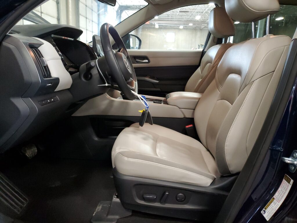 This 2023 Nissan Pathfinder (Blue) is equipped with an engine designed to balance performance and efficiency. According to the auction listing, the vehicle had 21,920 miles at the time of sale.
