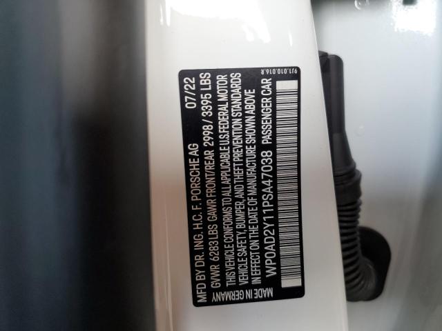 This 2023 Porsche Taycan (White) comes from a major insurance auction in the USA or Canada. All information on this page is linked to the vehicle’s VIN (WP0AD2Y11PSA47038), which helps confirm where the car was listed and what condition it was in at the time of sale.