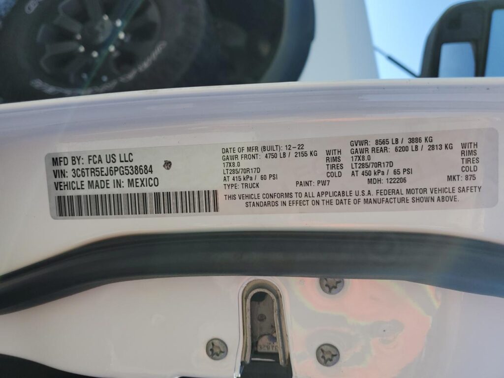 | VIN Number | 3C6TR5EJ6PG538684 |