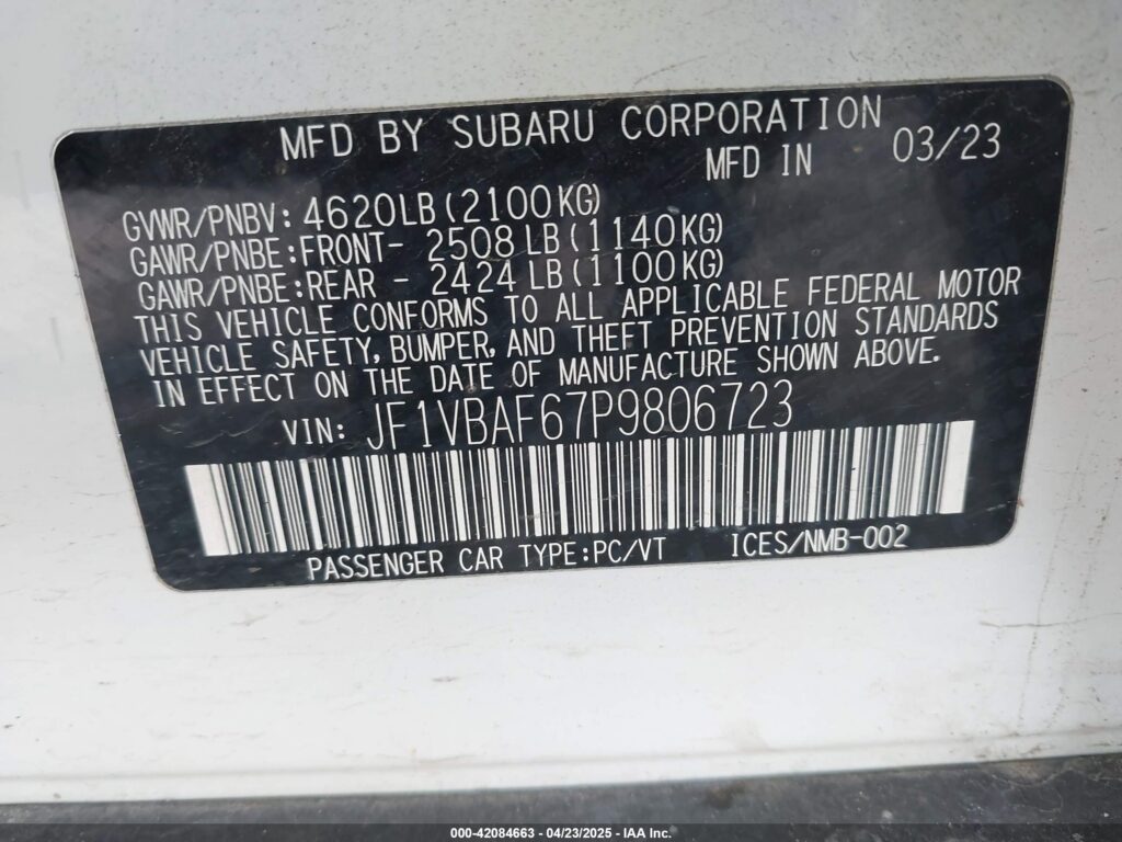 This 2023 Subaru WRX (White) comes from a major insurance auction in the USA or Canada. All information on this page is linked to the vehicle’s VIN (JF1VBAF67P9806723), which helps confirm where the car was listed and what condition it was in at the time of sale.