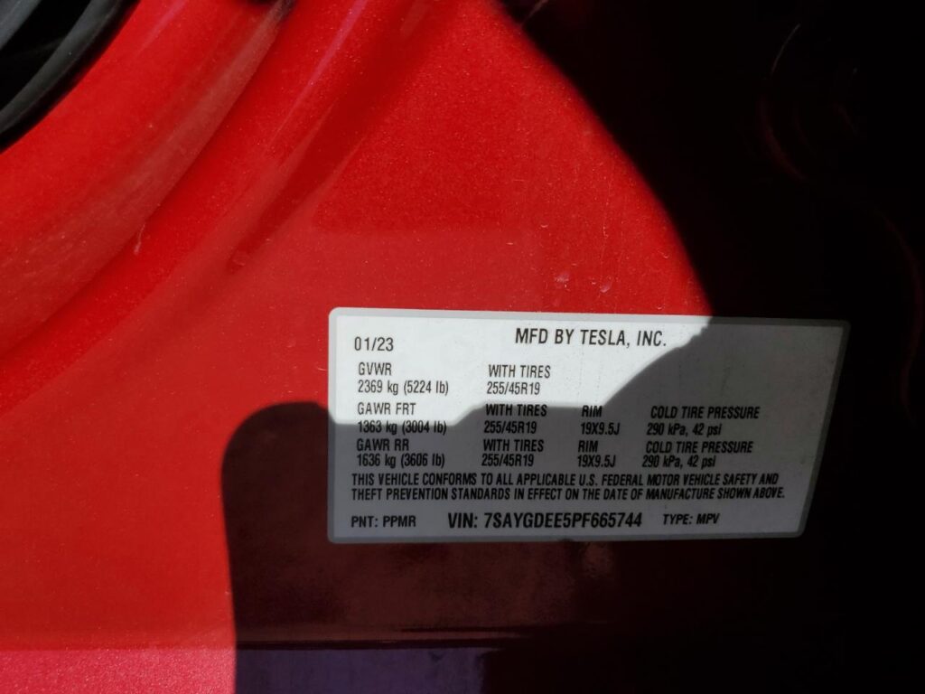 This 2023 Tesla Model Y (Red) comes from a major insurance auction in the USA or Canada. All information on this page is linked to the vehicle’s VIN (7SAYGDEE5PF665744), which helps confirm where the car was listed and what condition it was in at the time of sale.