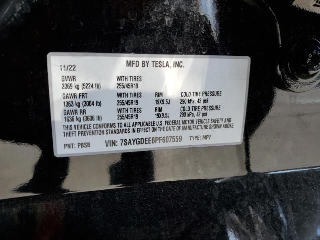 This 2023 Tesla Model Y (Black) comes from a major insurance auction in the USA or Canada. All information on this page is linked to the vehicle’s VIN (7SAYGDEE6PF607559), which helps confirm where the car was listed and what condition it was in at the time of sale.
