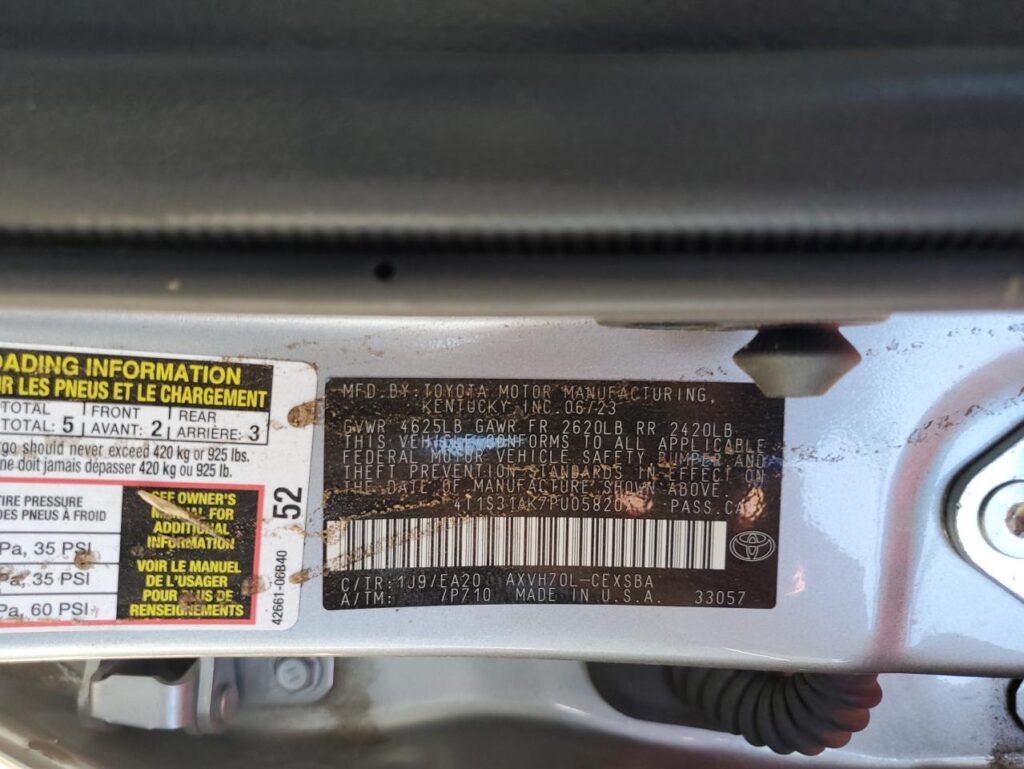 | VIN Number | 4T1S31AK7PU058207 |