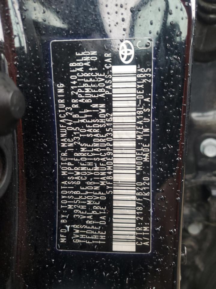 This 2023 Toyota Corolla (Black) comes from a major insurance auction in the USA or Canada. All information on this page is linked to the vehicle’s VIN (5YFB4MDE9PP035162), which helps confirm where the car was listed and what condition it was in at the time of sale.