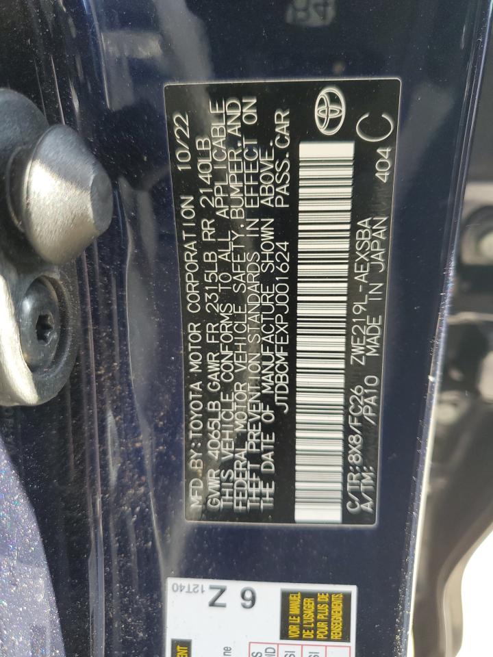 This 2023 Toyota Corolla (Blue) comes from a major insurance auction in the USA or Canada. All information on this page is linked to the vehicle’s VIN (JTDBCMFEXPJ001624), which helps confirm where the car was listed and what condition it was in at the time of sale.