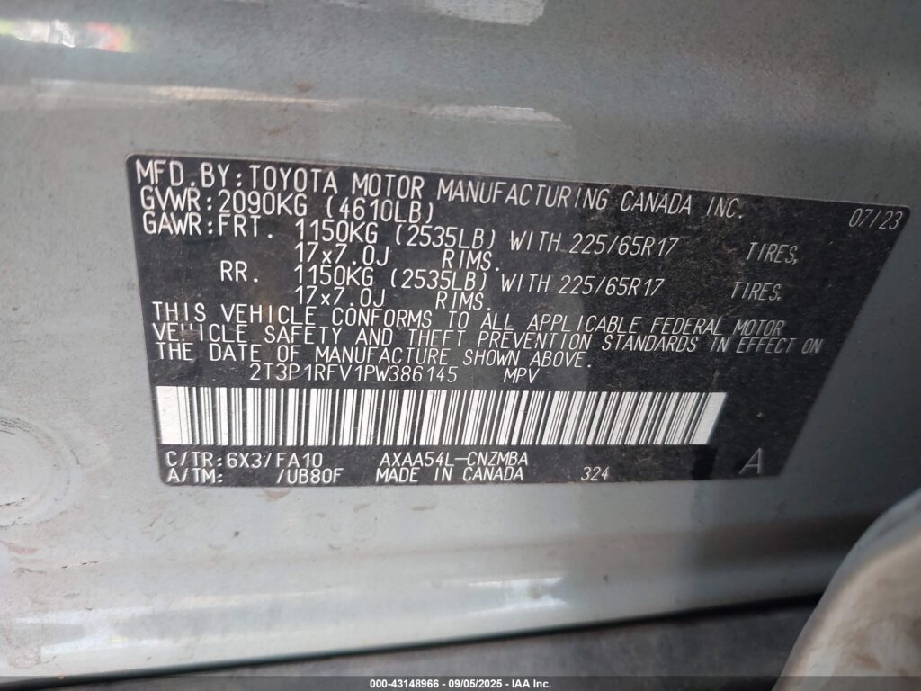 | VIN Number | 2T3P1RFV1PW386145 |