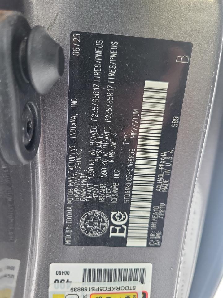 This 2023 Toyota Sienna (Grey) comes from a major insurance auction in the USA or Canada. All information on this page is linked to the vehicle’s VIN (5TDGRKEC5PS168839), which helps confirm where the car was listed and what condition it was in at the time of sale.