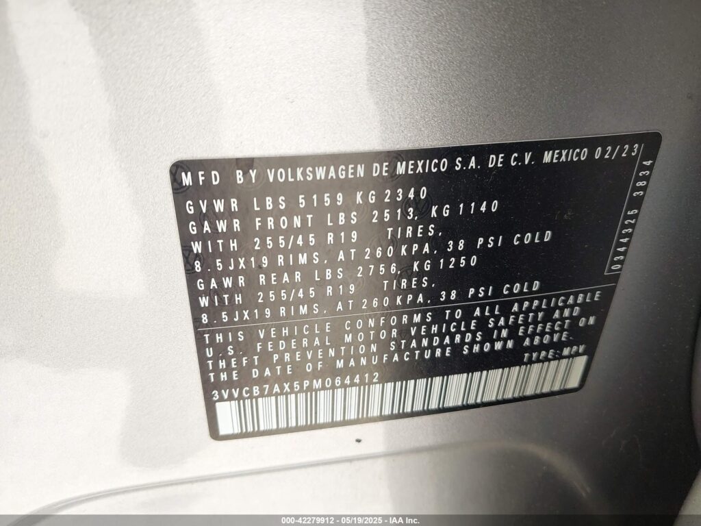 This 2023 Volkswagen Tiguan (Silver) comes from a major insurance auction in the USA or Canada. All information on this page is linked to the vehicle’s VIN (3VVCB7AX5PM064412), which helps confirm where the car was listed and what condition it was in at the time of sale.