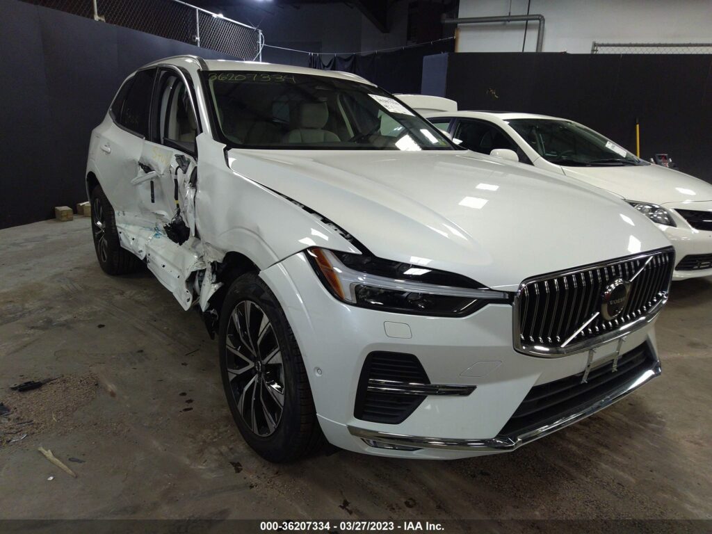 This 2023 Volvo XC60 (White) is equipped with an engine designed to balance performance and efficiency. According to the auction listing, the vehicle had 1,499 miles at the time of sale.