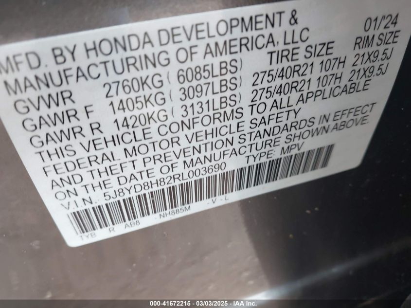 VIN: 5J8YD8H82RL003690