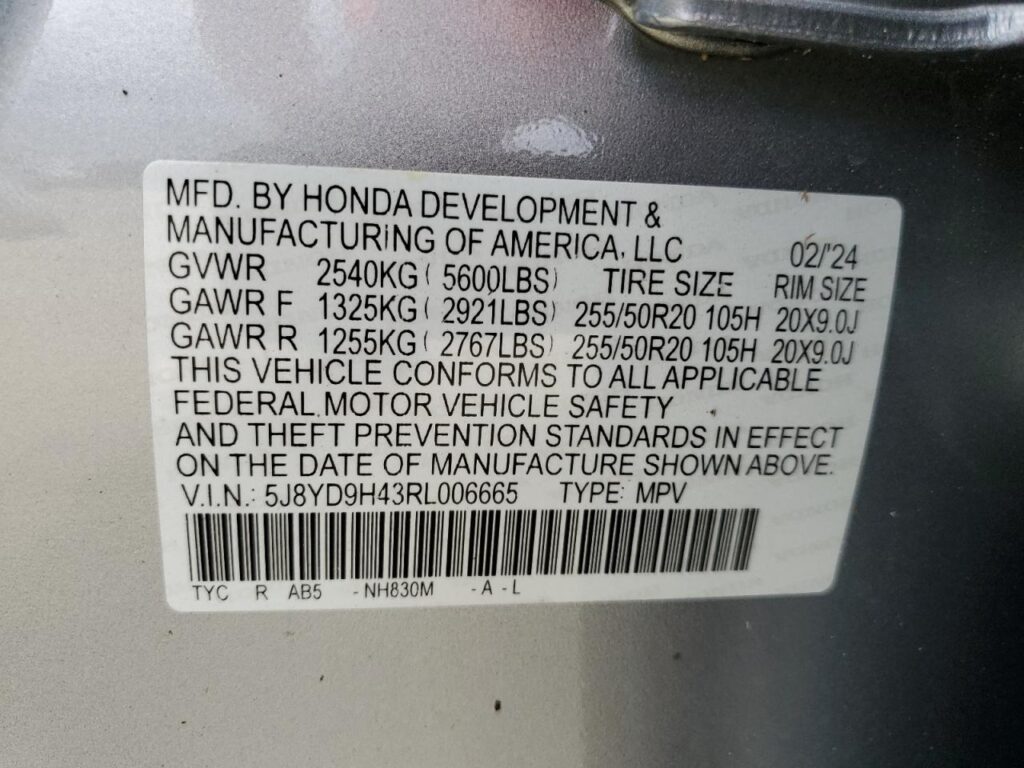 This 2024 Acura MDX (Charcoal) comes from a major insurance auction in the USA or Canada. All information on this page is linked to the vehicle’s VIN (5J8YD9H43RL006665), which helps confirm where the car was listed and what condition it was in at the time of sale.