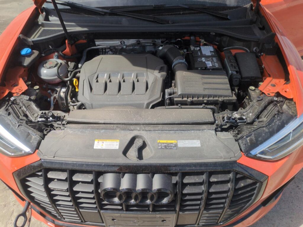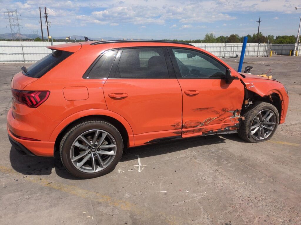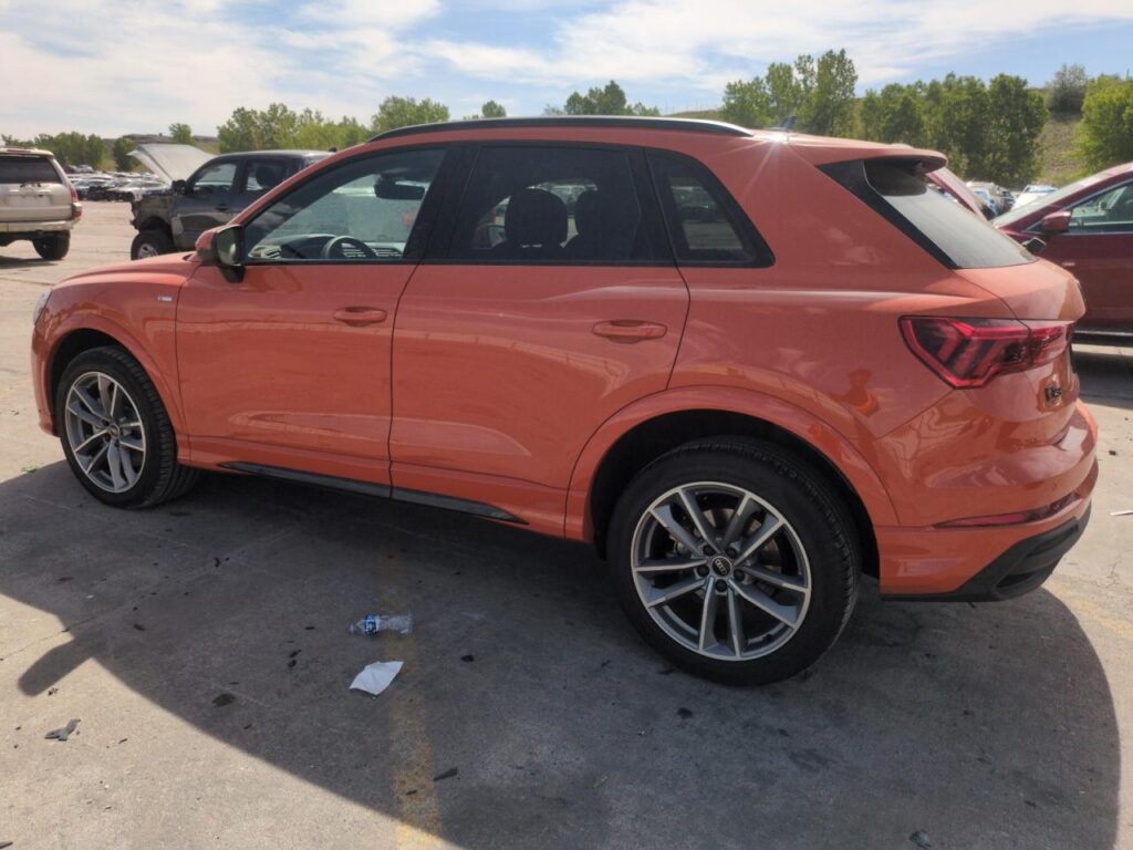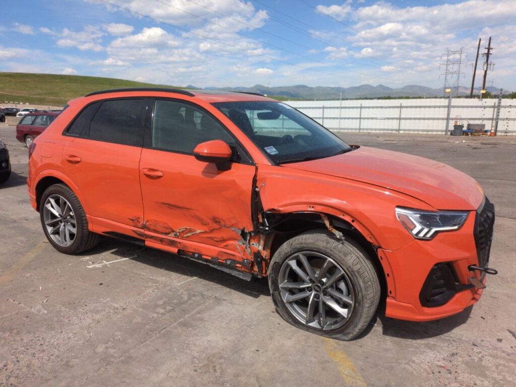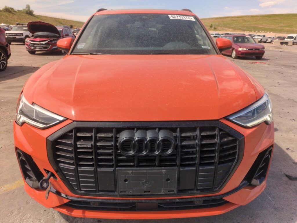 This 2024 Audi Q3 (Orange) is equipped with an engine designed to balance performance and efficiency. According to the auction listing, the vehicle had 7,220 miles at the time of sale.