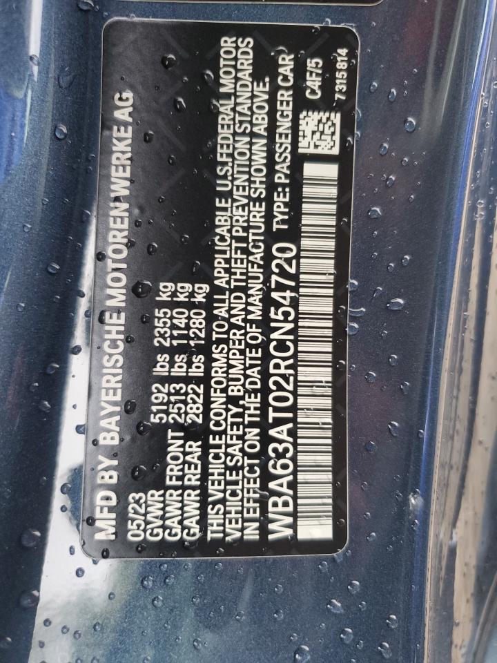 This 2024 BMW M4 (Blue) comes from a major insurance auction in the USA or Canada. All information on this page is linked to the vehicle’s VIN (WBA63AT02RCN54720), which helps confirm where the car was listed and what condition it was in at the time of sale.