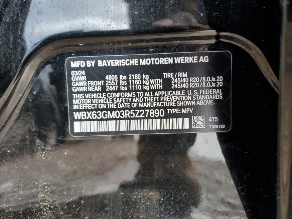 This 2024 BMW X2 (BLACK) comes from a major insurance auction in the USA or Canada. All information on this page is linked to the vehicle’s VIN (WBX63GM03R5Z27890), which helps confirm where the car was listed and what condition it was in at the time of sale.