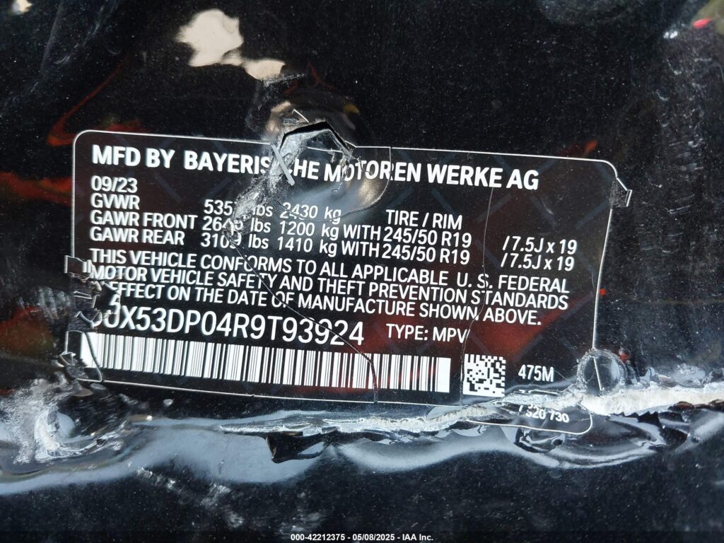 This 2024 BMW X3 (Black) comes from a major insurance auction in the USA or Canada. All information on this page is linked to the vehicle’s VIN (5UX53DP04R9T93924), which helps confirm where the car was listed and what condition it was in at the time of sale.