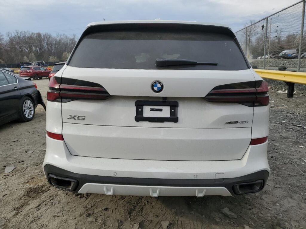 This 2024 BMW X5 (White) is equipped with an engine designed to balance performance and efficiency. According to the auction listing, the vehicle had mileage not provided at the time of sale.