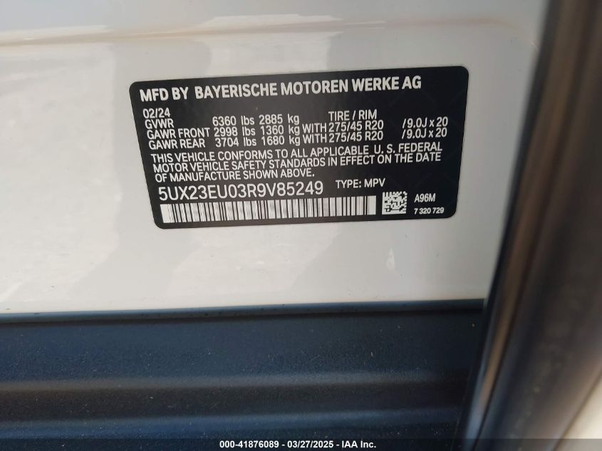 This 2024 BMW X5 (Unknown Color) comes from a major insurance auction in the USA or Canada. All information on this page is linked to the vehicle’s VIN (5UX23EU03R9V85249), which helps confirm where the car was listed and what condition it was in at the time of sale.