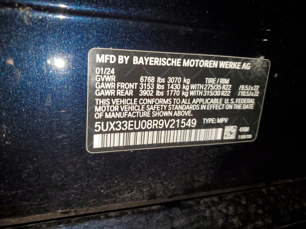This 2024 BMW X5 (Blue) comes from a major insurance auction in the USA or Canada. All information on this page is linked to the vehicle’s VIN (5UX33EU08R9V21549), which helps confirm where the car was listed and what condition it was in at the time of sale.