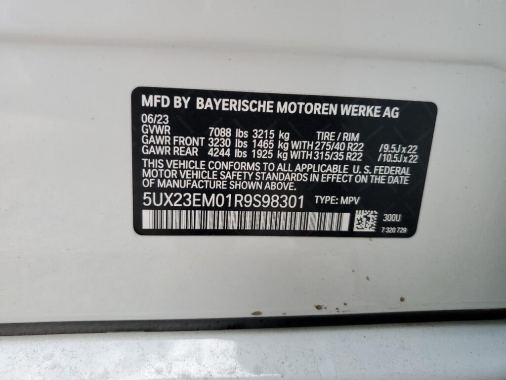 This 2024 BMW X7 (White) comes from a major insurance auction in the USA or Canada. All information on this page is linked to the vehicle’s VIN (5UX23EM01R9S98301), which helps confirm where the car was listed and what condition it was in at the time of sale.