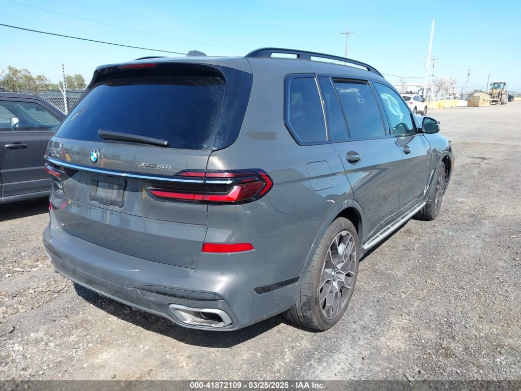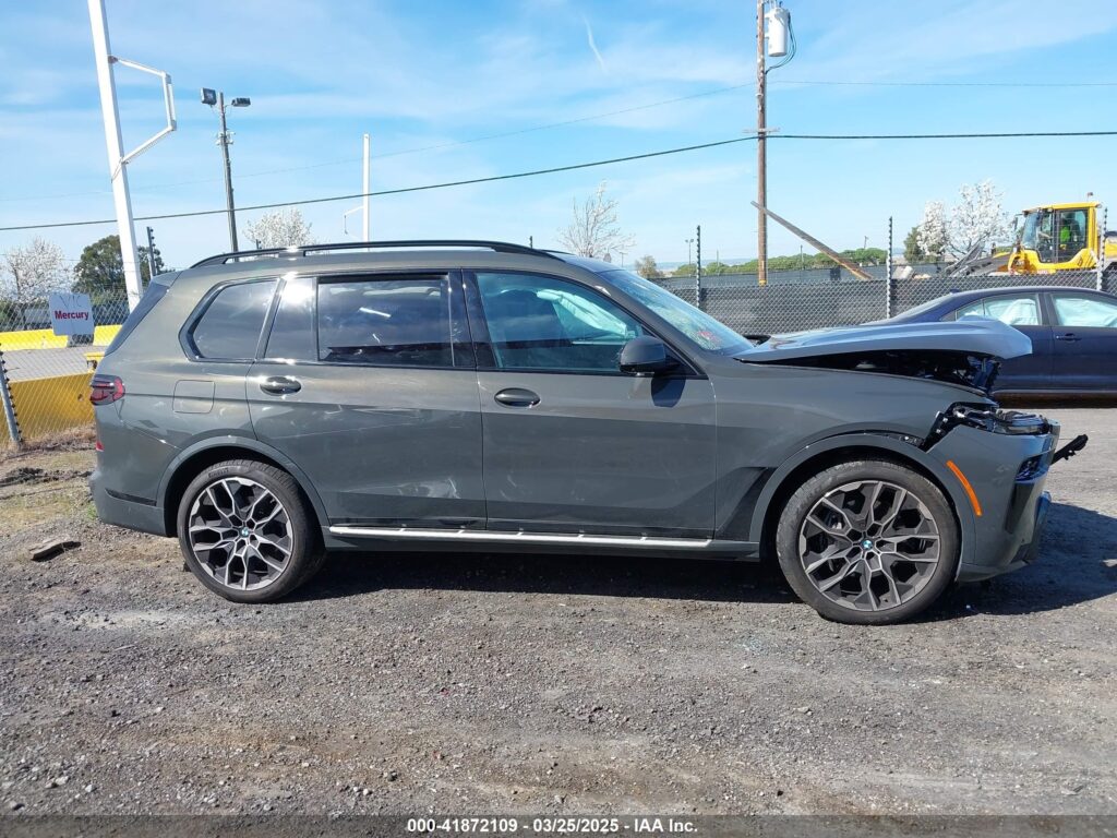 This 2024 BMW X7 (Grey) is equipped with an engine designed to balance performance and efficiency. According to the auction listing, the vehicle had 9,974 miles at the time of sale.