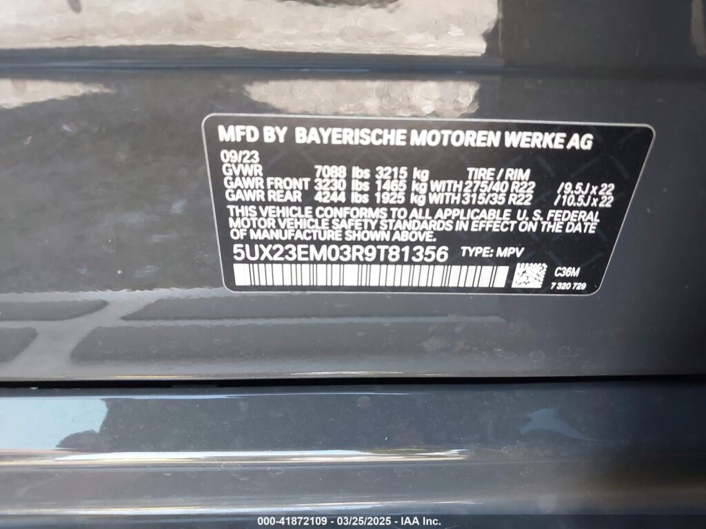 This 2024 BMW X7 (Grey) comes from a major insurance auction in the USA or Canada. All information on this page is linked to the vehicle’s VIN (5UX23EM03R9T81356), which helps confirm where the car was listed and what condition it was in at the time of sale.