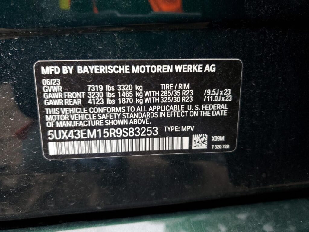 This 2024 BMW X7 (Green) comes from a major insurance auction in the USA or Canada. All information on this page is linked to the vehicle’s VIN (5UX43EM15R9S83253), which helps confirm where the car was listed and what condition it was in at the time of sale.
