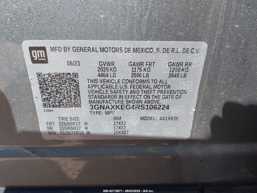 | VIN Number | 3GNAXKEG4RS106224 |