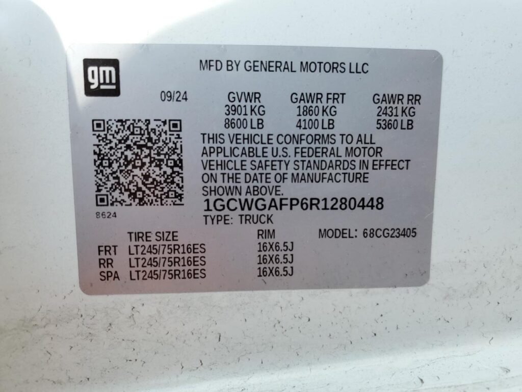 This 2024 Chevrolet Express 2500 (White) is equipped with an engine designed to balance performance and efficiency. According to the auction listing, the vehicle had 8,201 miles at the time of sale.