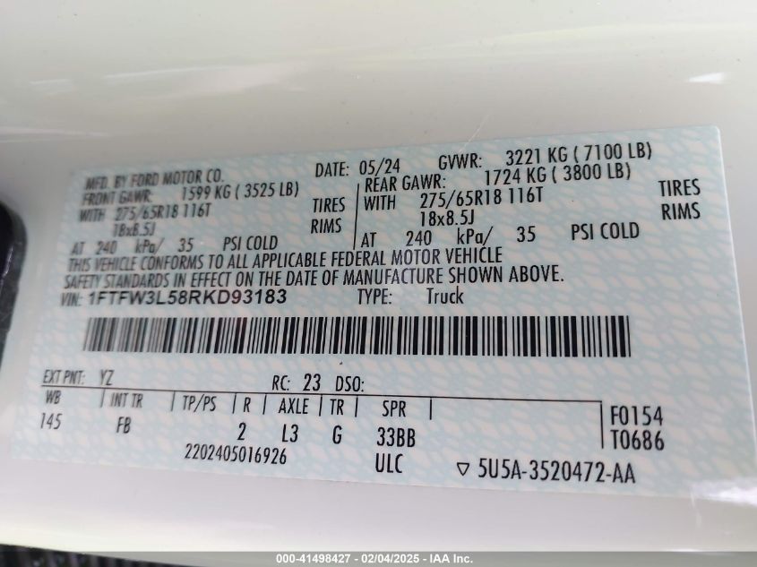 2024 FORD F-150 – 1FTFW3L58RKD93183