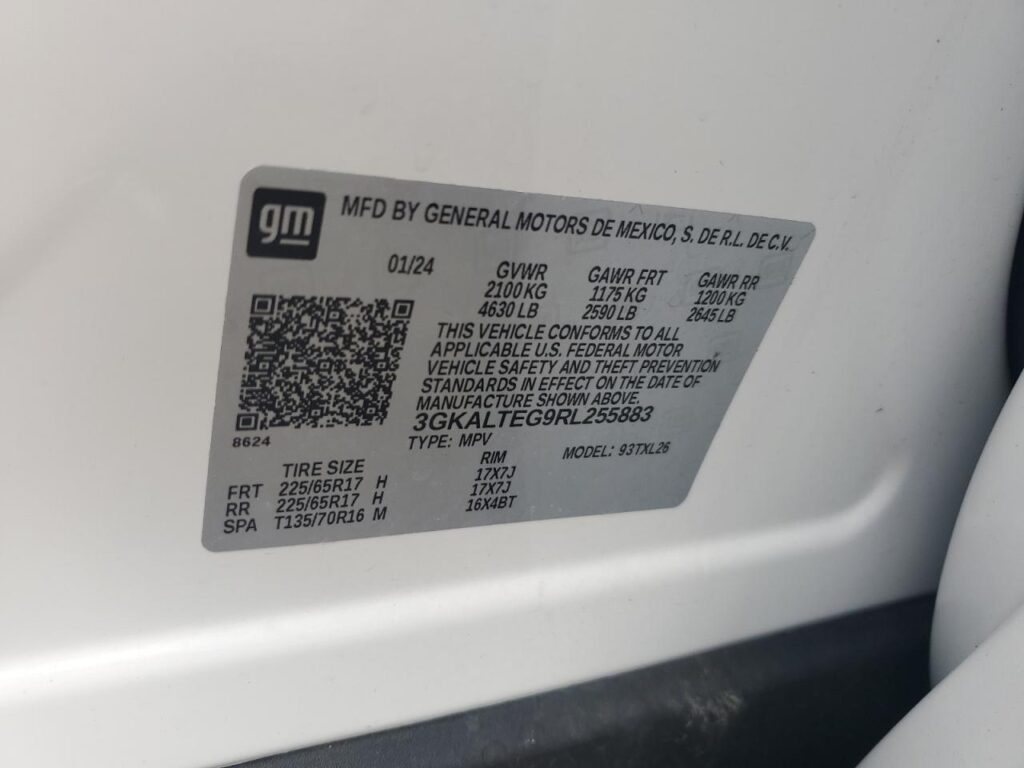 This 2024 Gmc Terrain sle (WHITE) comes from a major insurance auction in the USA or Canada. All information on this page is linked to the vehicle’s VIN (3GKALTEG9RL255883), which helps confirm where the car was listed and what condition it was in at the time of sale.