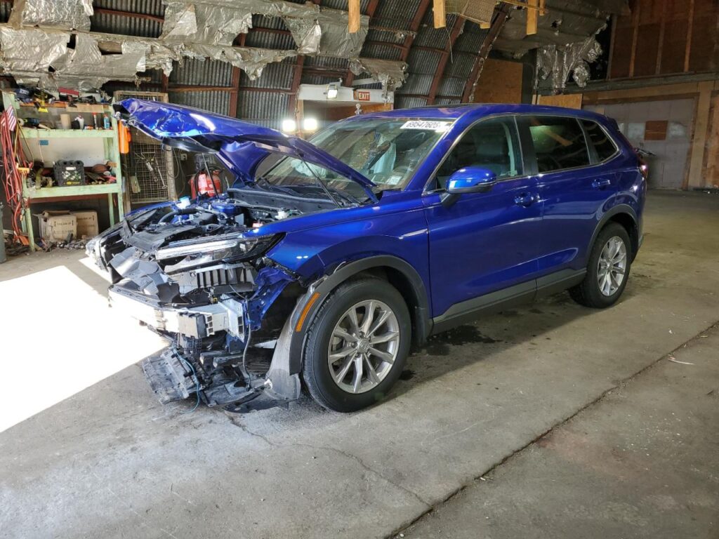 This 2024 Honda CR-V (Blue) is equipped with an engine designed to balance performance and efficiency. According to the auction listing, the vehicle had 20,255 miles at the time of sale.