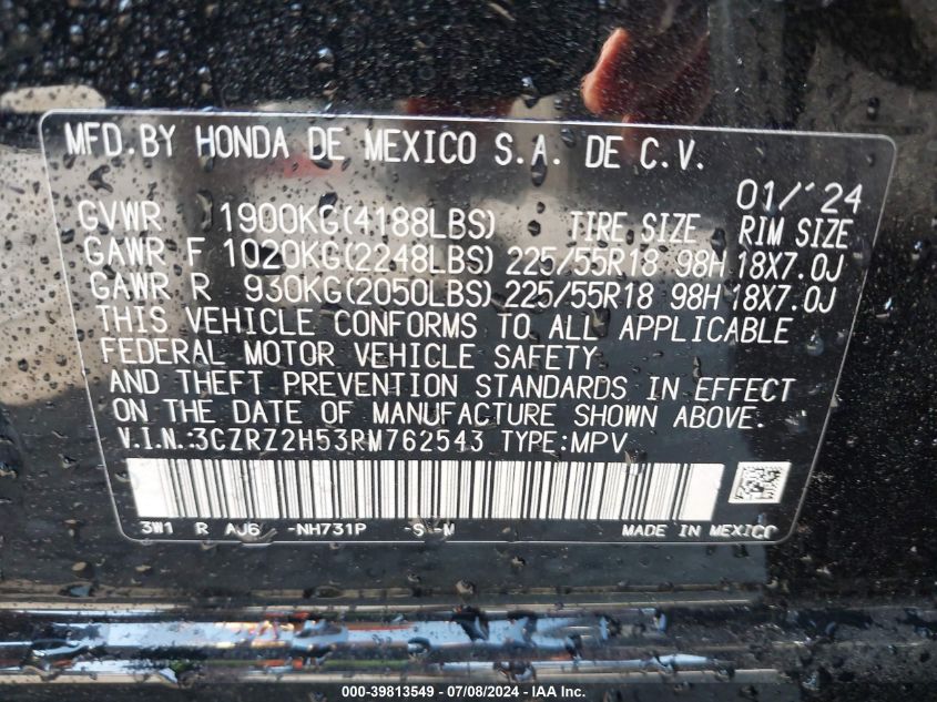 2024 HONDA HR-V – 3CZRZ2H53RM762543