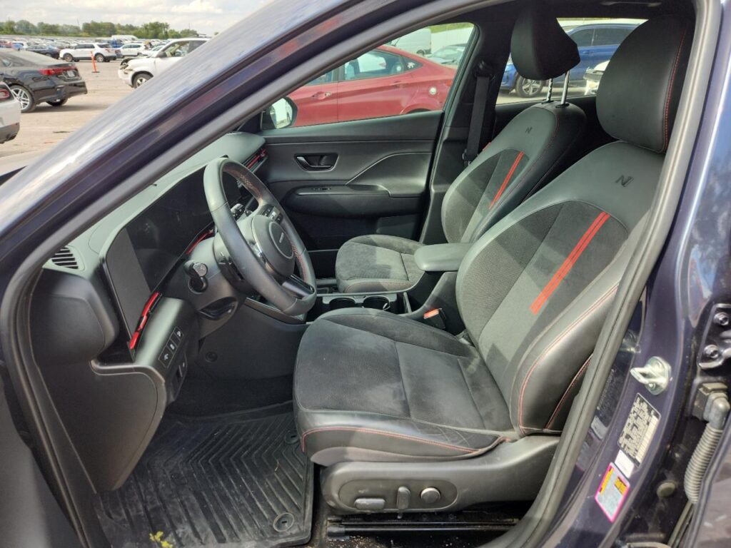 This 2024 Hyundai Kona (Blue) is equipped with an engine designed to balance performance and efficiency. According to the auction listing, the vehicle had 23,980 miles at the time of sale.