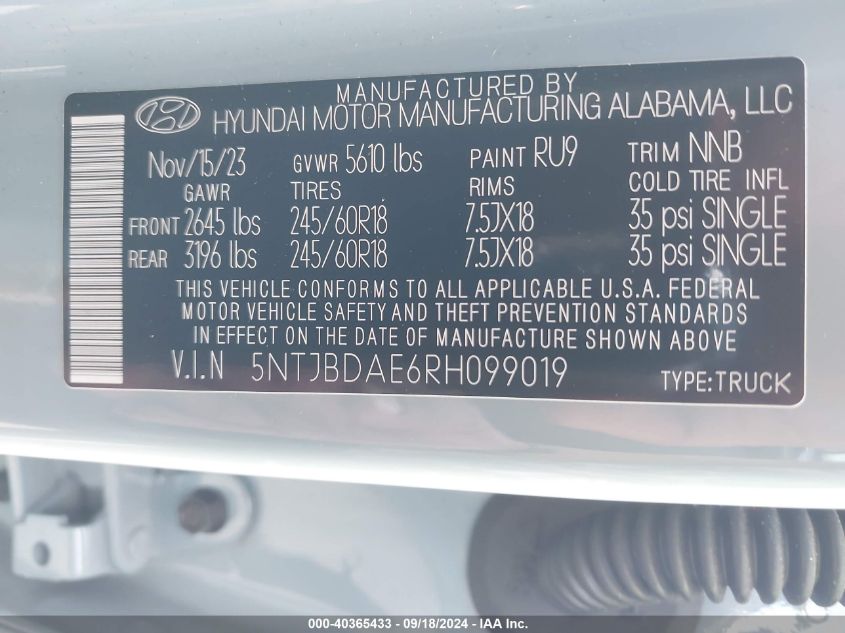 2024 HYUNDAI SANTA CRUZ – 5NTJBDAE6RH099019