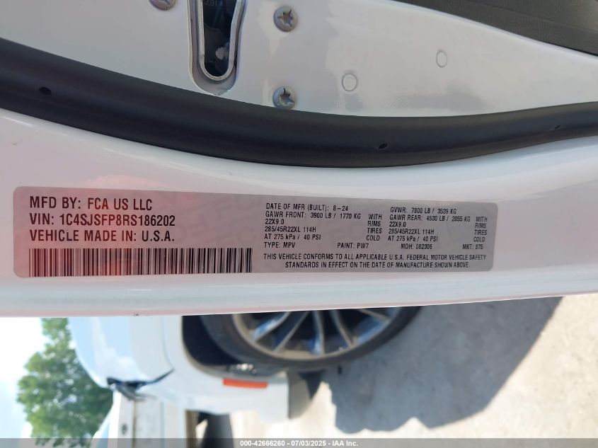 | VIN Number | 1C4SJSFP8RS186202 |